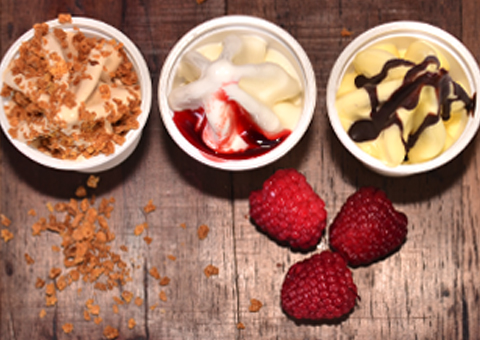 Nuestro producto estrella, frescamente preparado todos los días con leche deslactosada, semidescremada o entera, completado con exquisitas salsas, frutas tropicales, riquísimos toppings, frutos secos y minis golosinas, haciéndolo un conjunto apetecible en cualquier momento.
