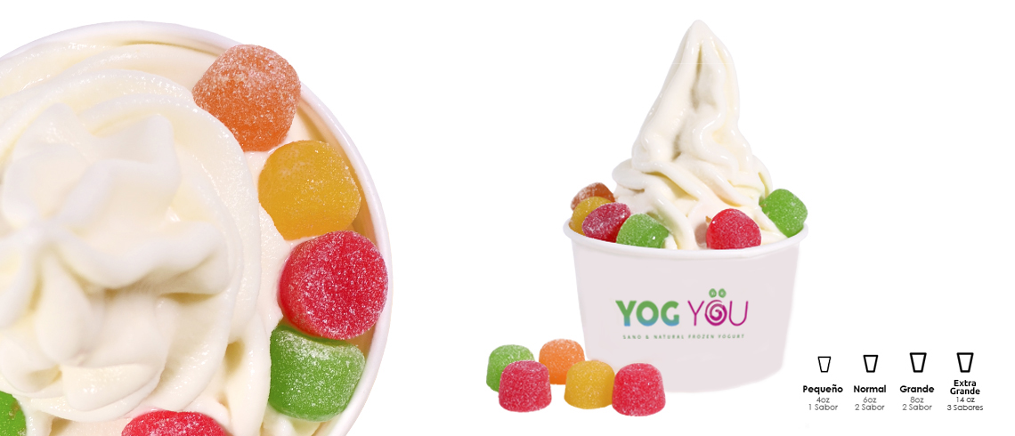 Los sabores adicionales entre nuestros 13 sabores disponibles de yogurt helado YOG YOU están Yogurt Helado Griego (YHG) con FRESA endulzado con stevia y bajo en lactosa, YHG con PULPA DE MANGO, GUANÁBANA, PULPA DE CEREZA DEL MONTE, PULPA DE NÍSPERO o PULPA DE ZAPOTE endulzado con stevia y bajo en lactosa, además de nuestro delicioso YHG COROZO.